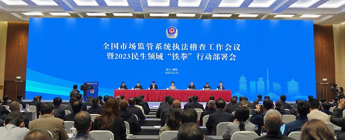 - 全國市場監(jiān)管系統執(zhí)法稽查工作暨2023民... 2月23日,全國市場監(jiān)管系統執(zhí)法稽查工作會議暨2023民生領域“鐵拳”行動部署會在四川省綿陽市舉行。會議全面貫徹黨的二十大精神,深入落實全國市場監(jiān)管工作會議部署...